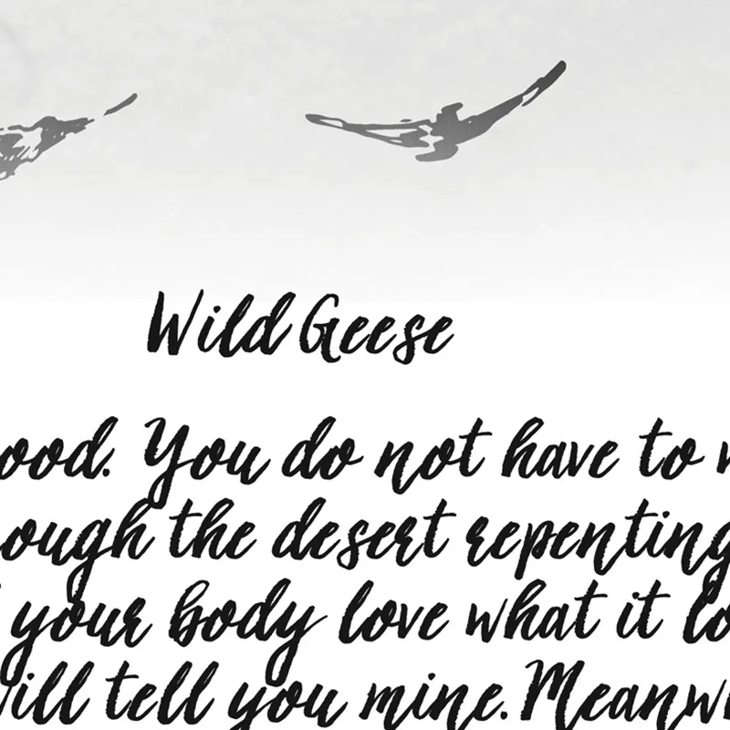 Wild Geese You do not have to be good. Love what it loves. Tell me about despair yours and I will tell you mine.